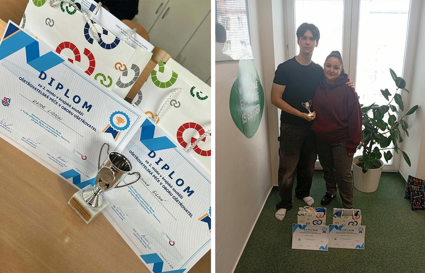 Střední zdravotnická škola v Karviné hostila krajskou soutěž v ošetřovatelské péči. Tamní reprezentanti Veronika Žigová a Viktor Ligocki svým umem získali 2. místo!